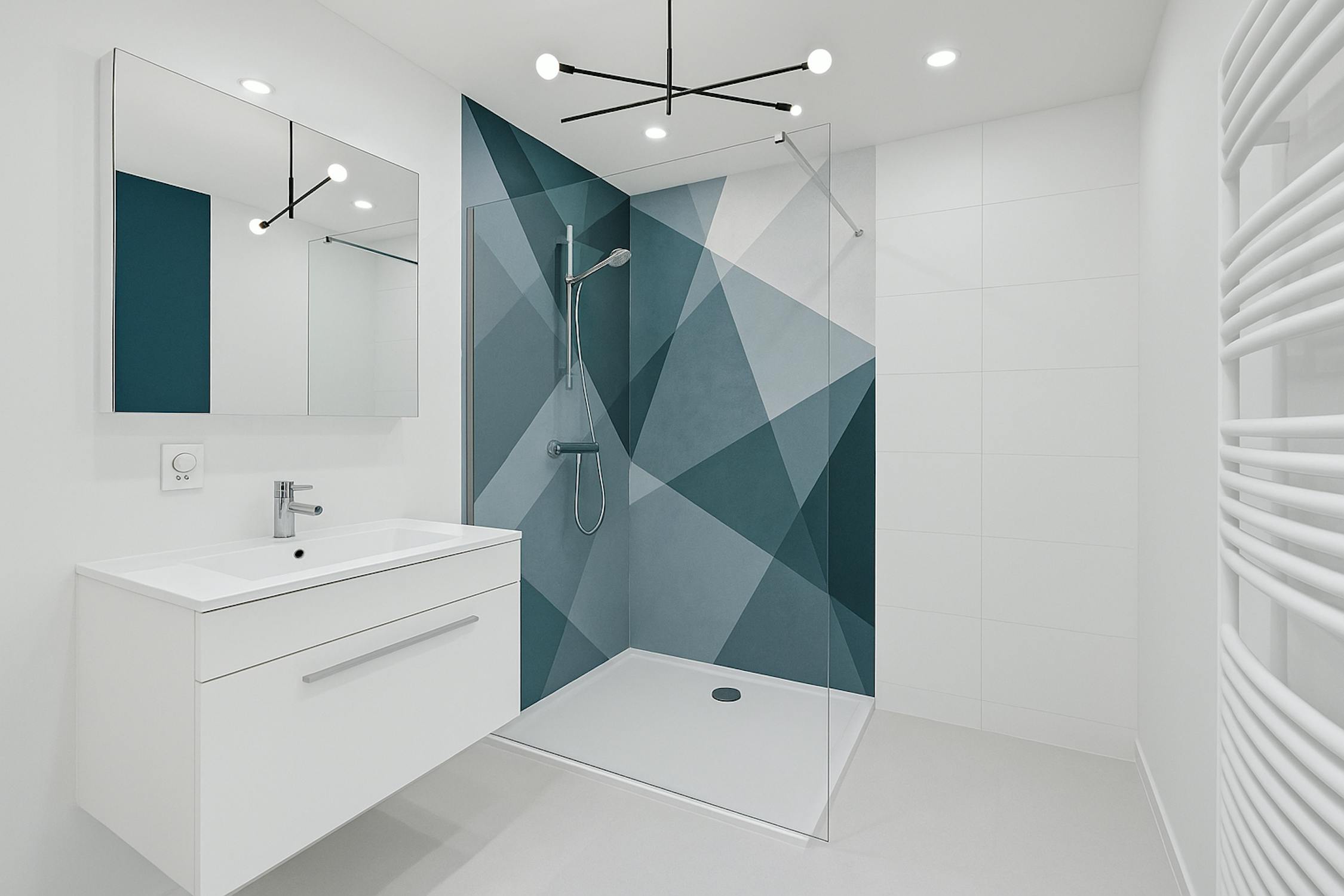 - Badkamer met wasmeubel en inloop douche;