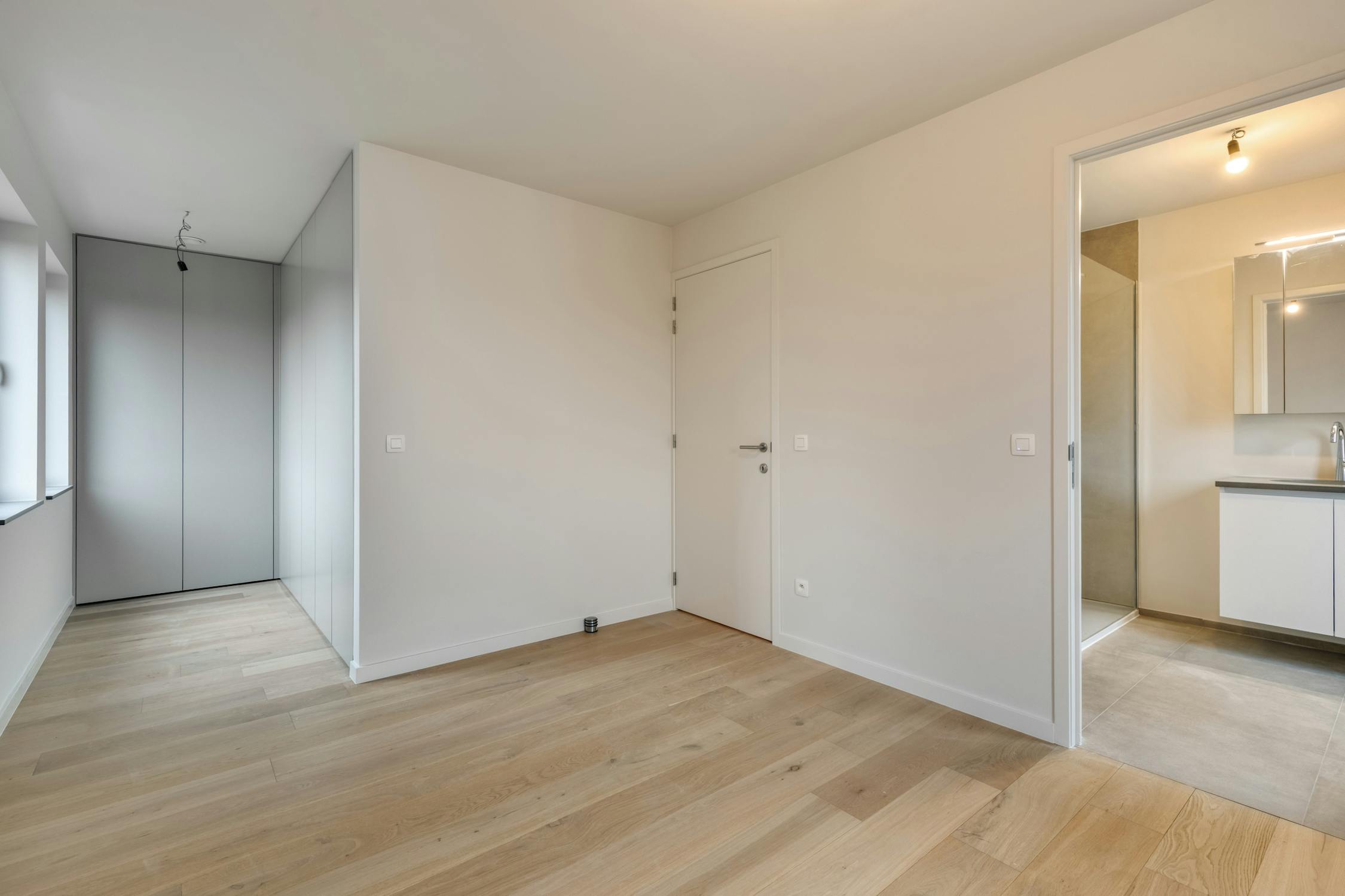 - slaapkamer 3 (12,15 m²) met dressing en aanpalende badkamer voorzien van inloopdouche, lavabo met wasmeubel en toilet;