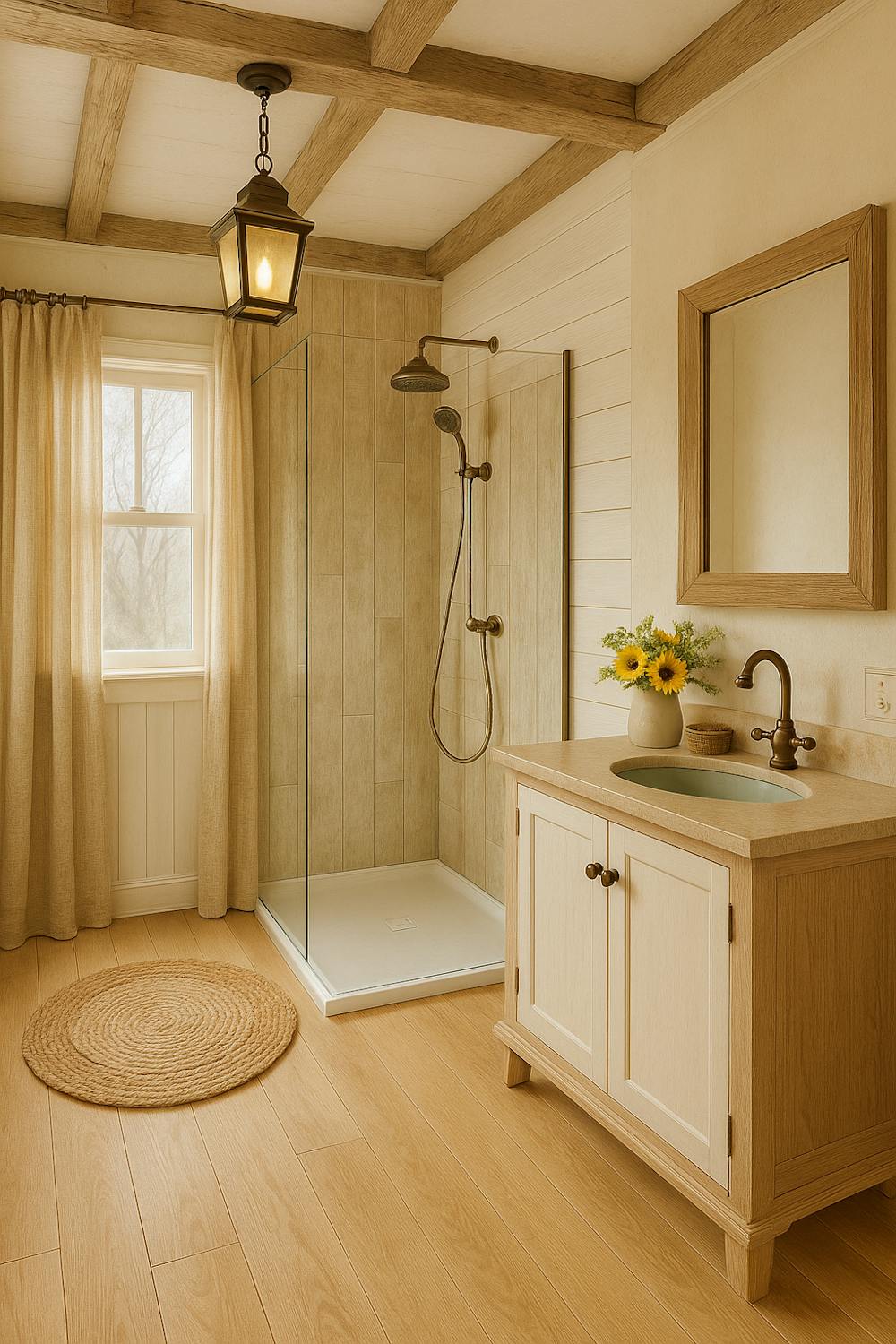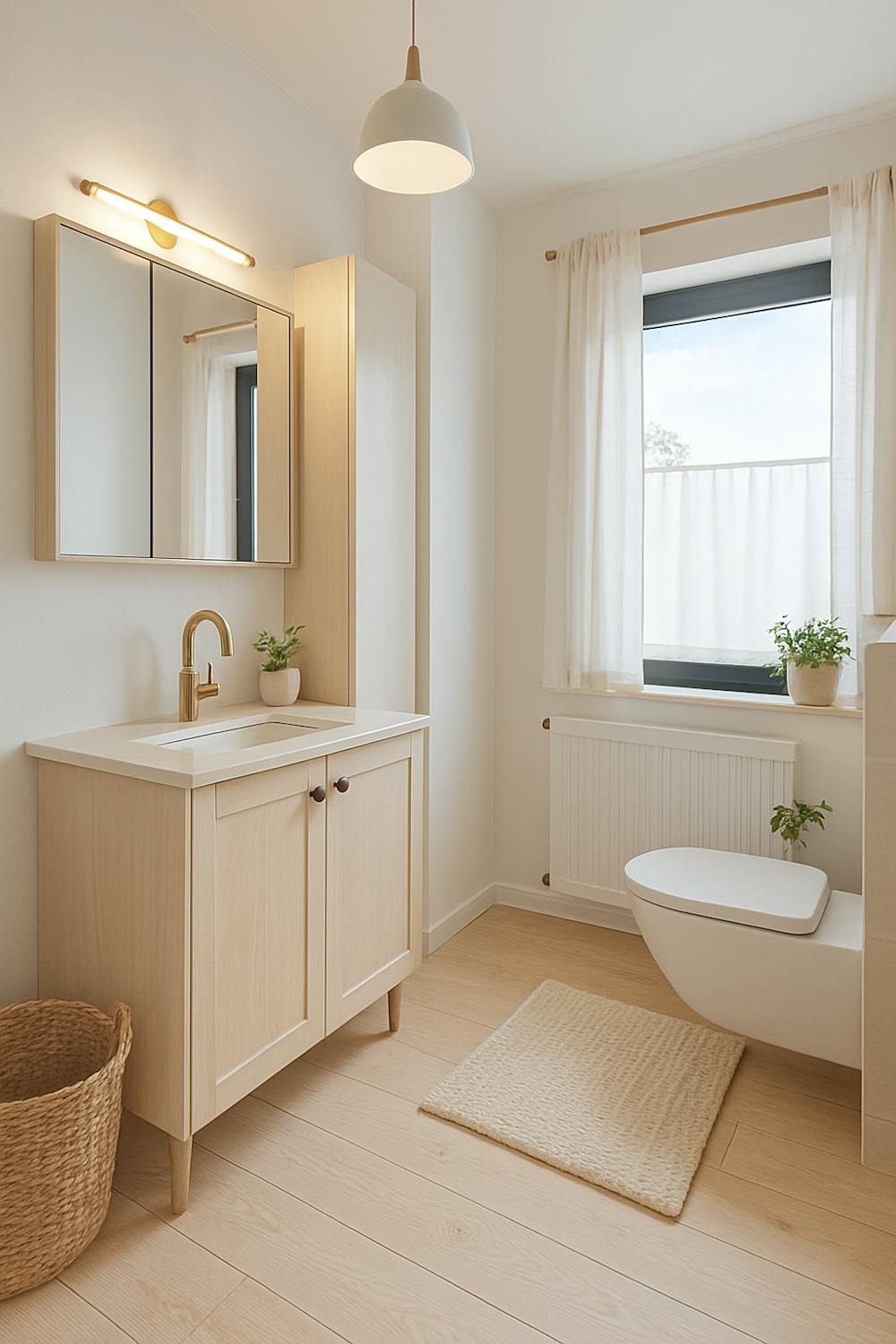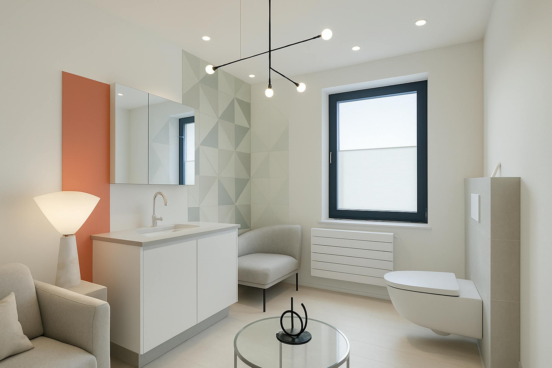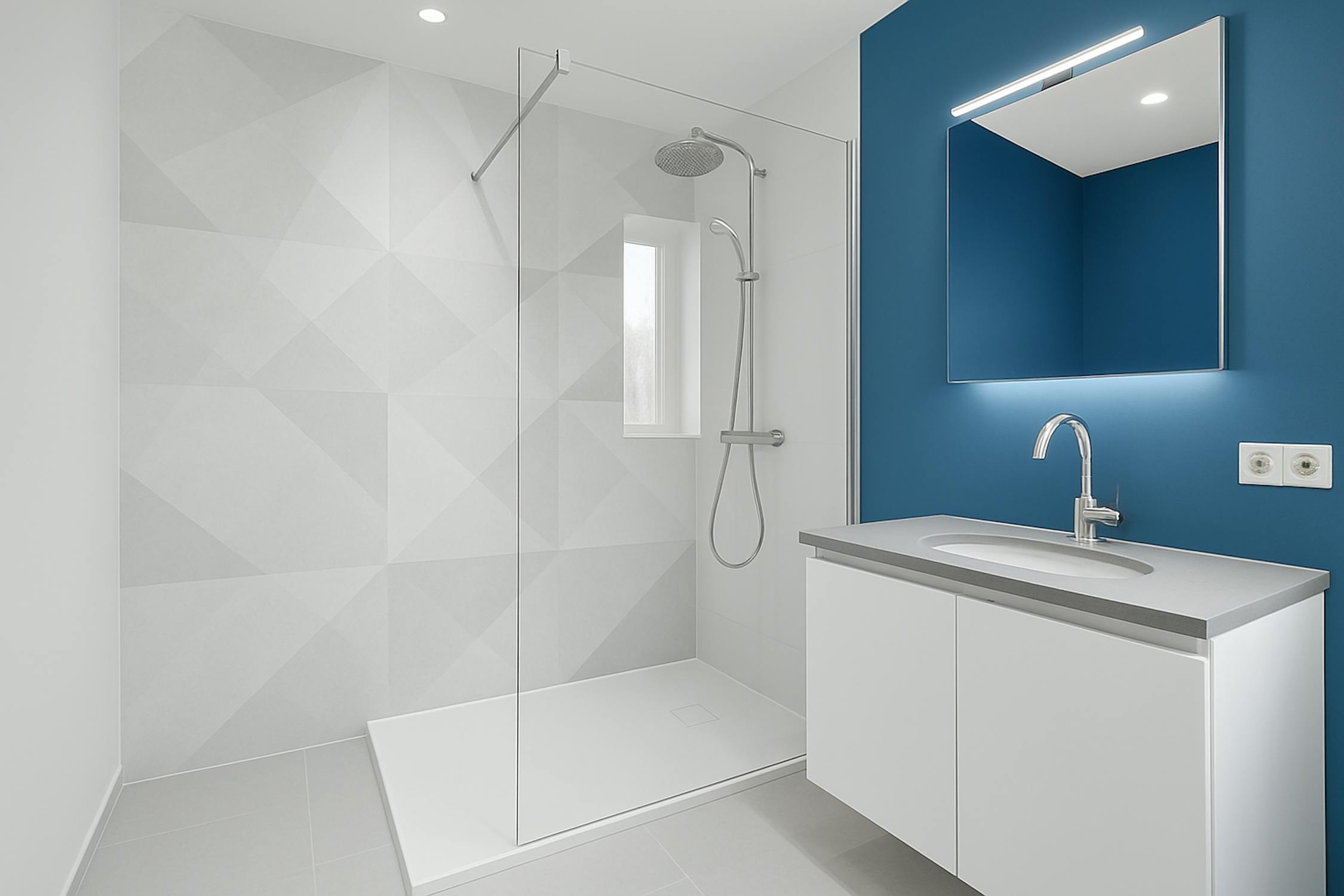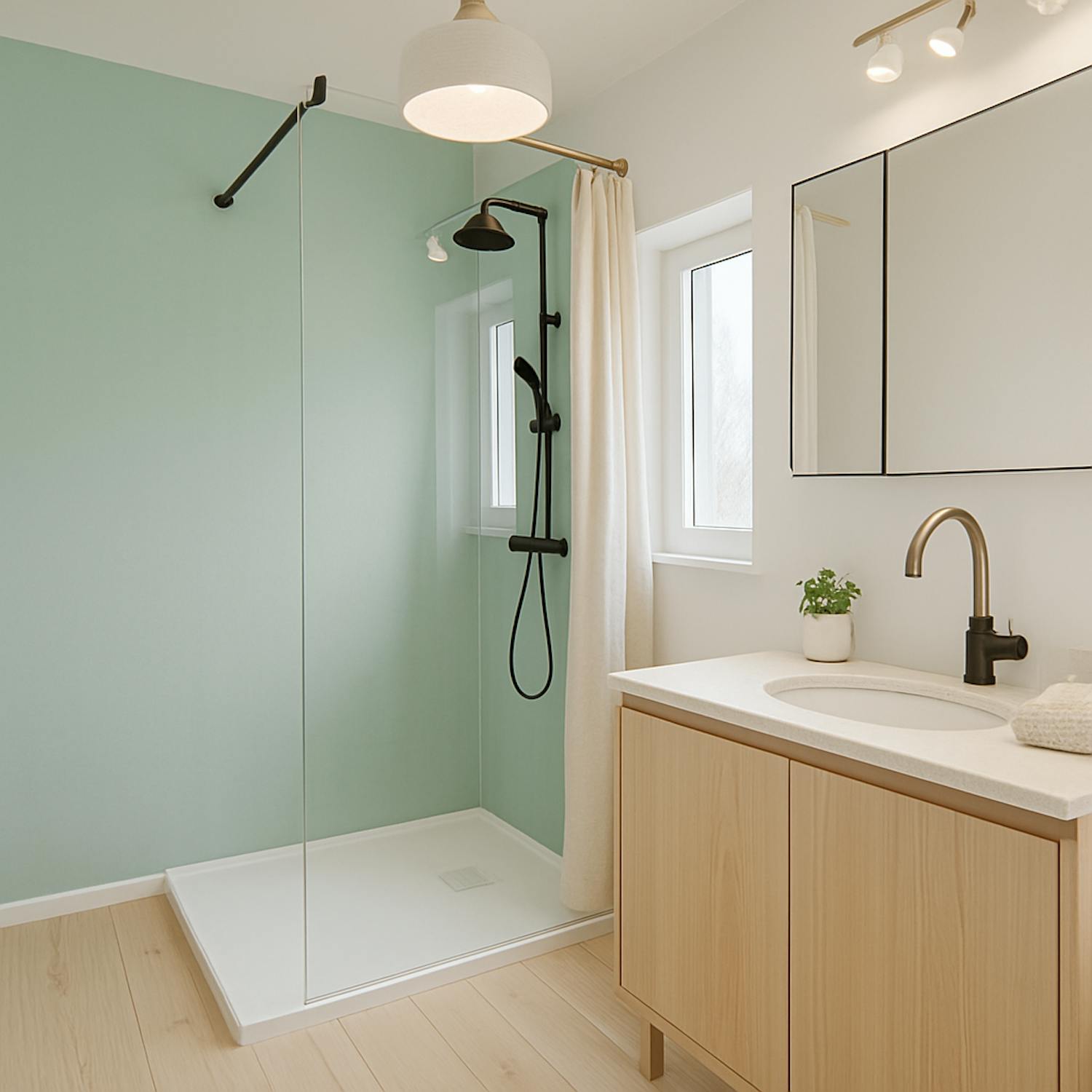 - badkamer met inloopdouche en lavabo met wasmeubel;