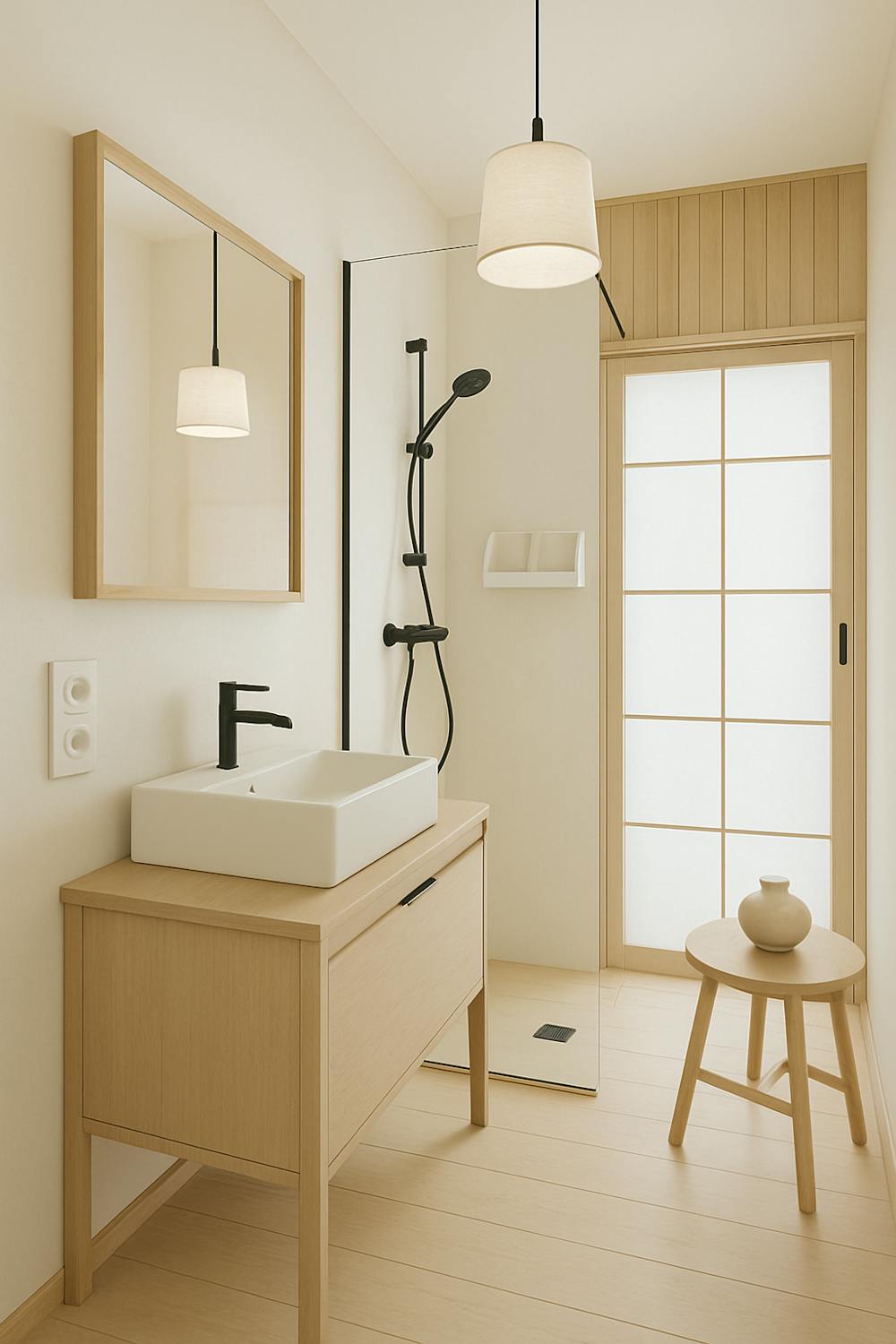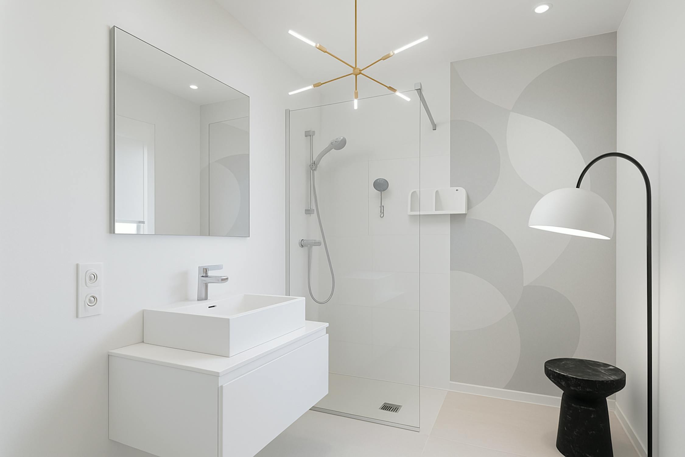 - badkamer voorzien van lavabo in meubel en inloopdouche