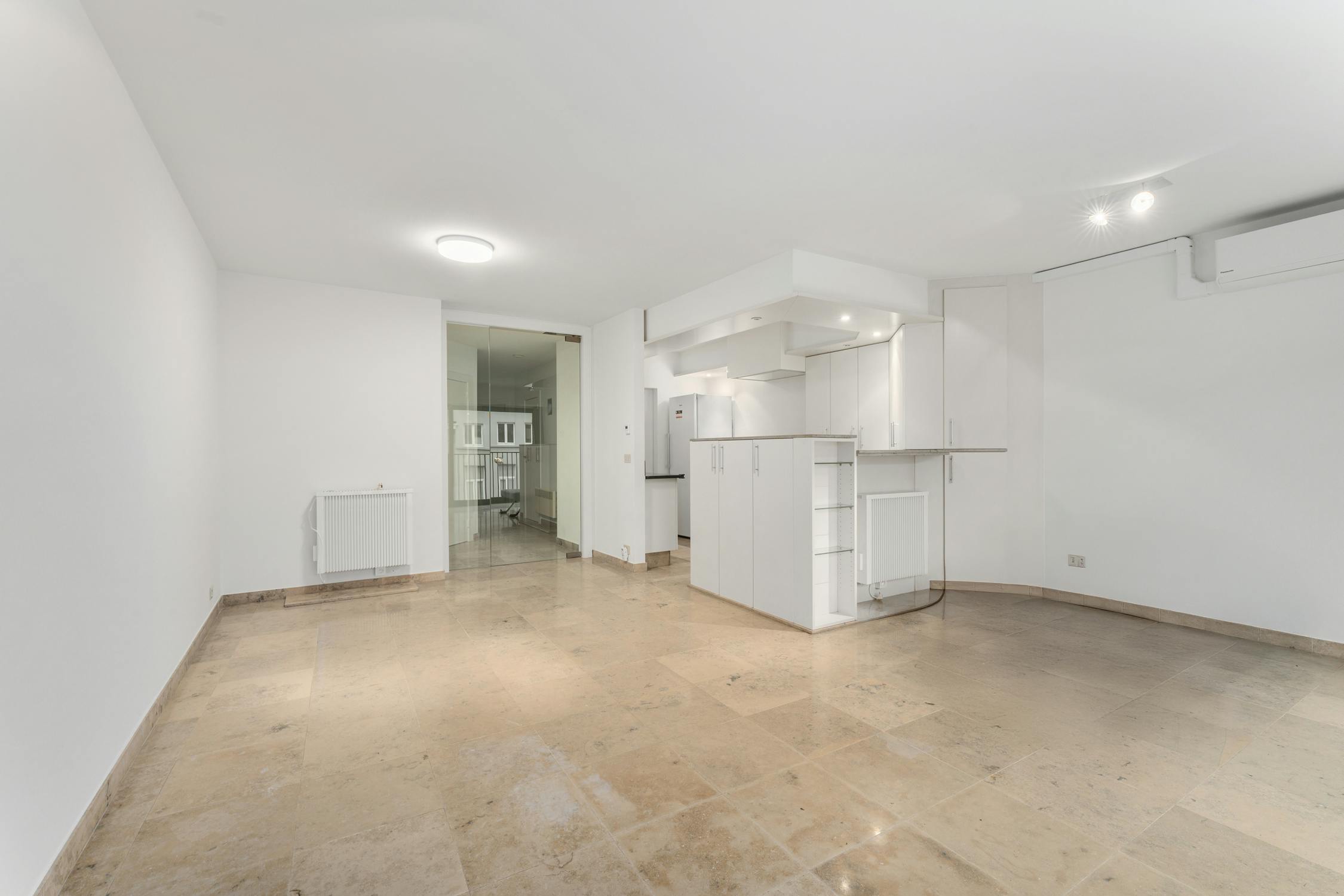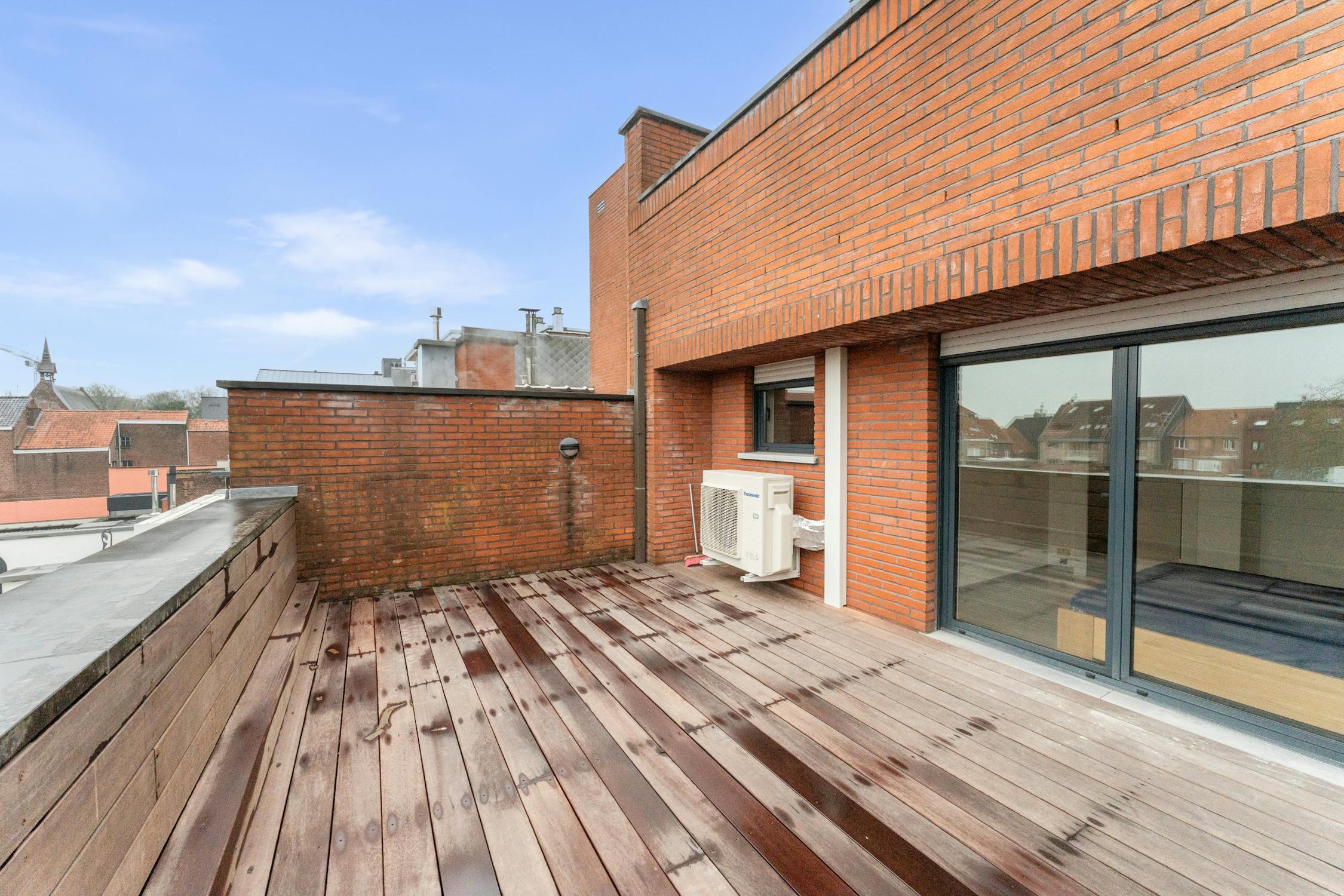 - Terrassen: geniet van een balkon (1,6 m²) vooraan met uitzicht op de winkelstraat en een groot zongericht terras (23 m²) achteraan.