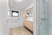 - badkamer met lavabomeubel, bad en douche