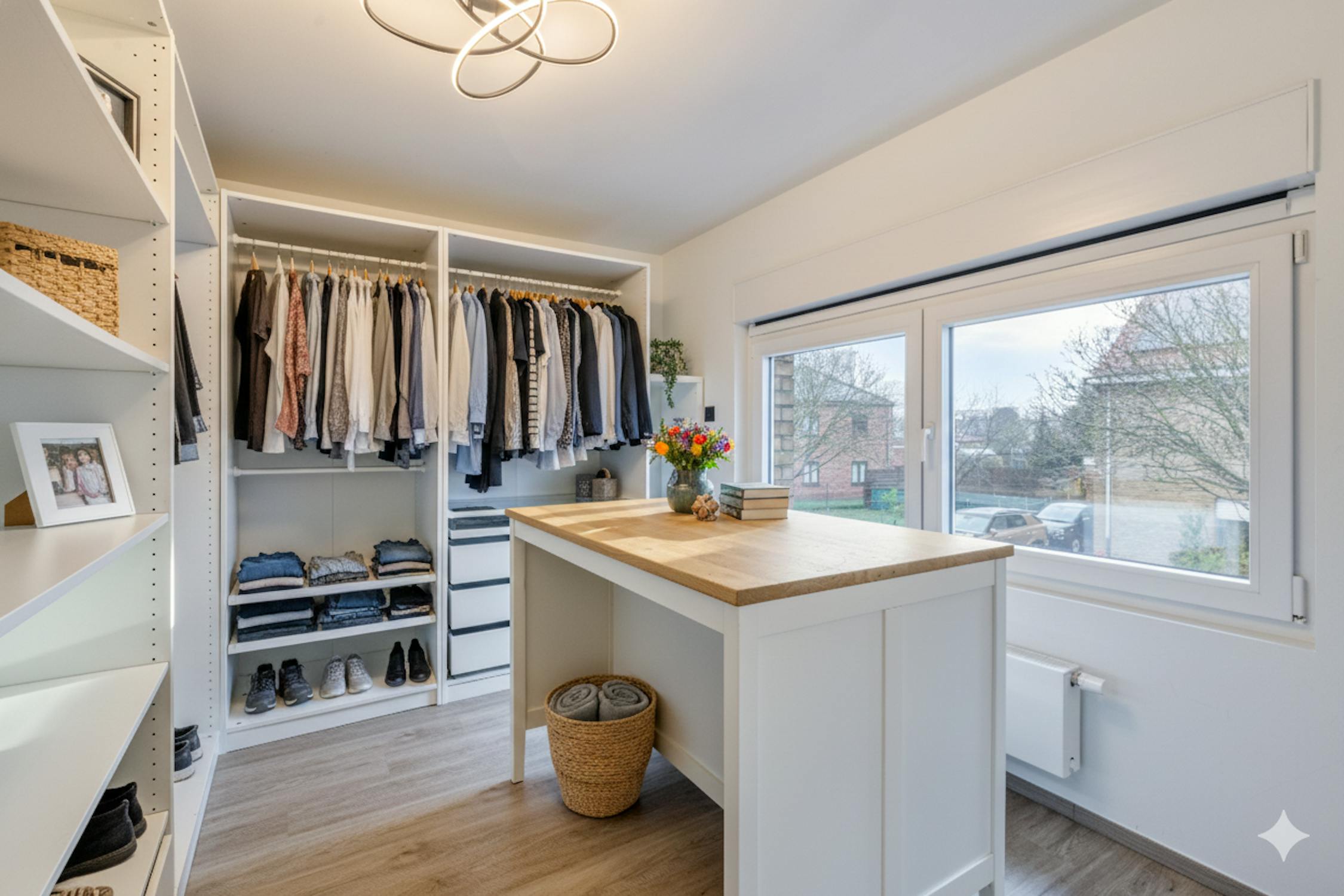- 2 ruime slaapkamers met een bijhorende kamer ingericht als dressing