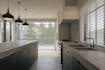 De leefkeuken is van een uitzonderlijk niveau en straalt pure luxe uit. Een royaal kookeiland in massieve natuursteen vormt het middelpunt, omringd door greeploze witte maatwerkkasten die zorgen voor een minimalistische look met maximale bergruimte. Alle apparatuur is top of the line, met onder meer een Lacanche gasfornuis, wijnfrigo’s, een koelcel en perfect geïntegreerde toestellen. Designverlichting benadrukt het strakke lijnenspel, terwijl de open connectie met terras en tuin ook hier zorgt voor een enorme lichtinval en gevoel van ruimte.