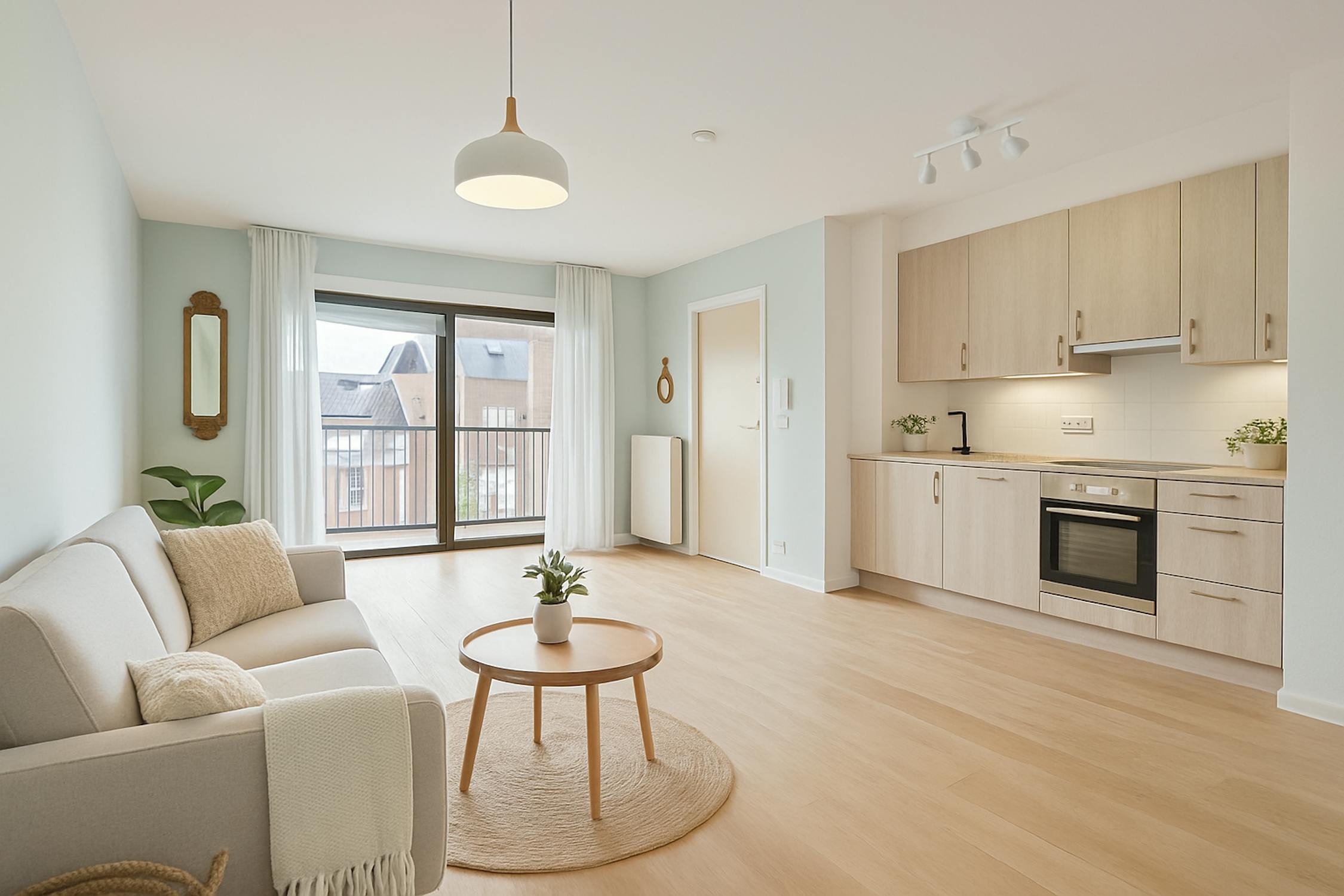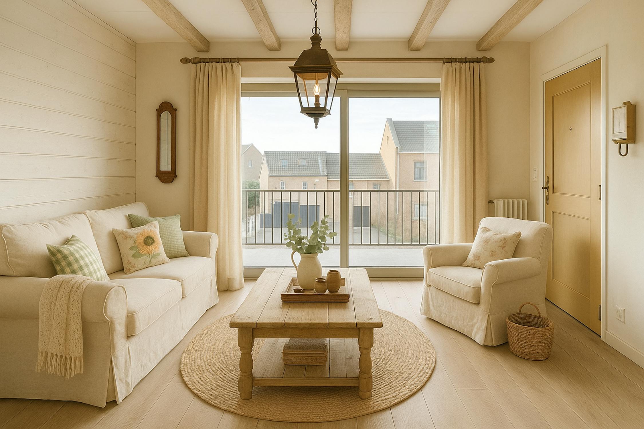 Verder zijn er overal gordijnen aanwezig, werd het appartement geschilderd en heb je het comfort van 2 ruime terrassen.