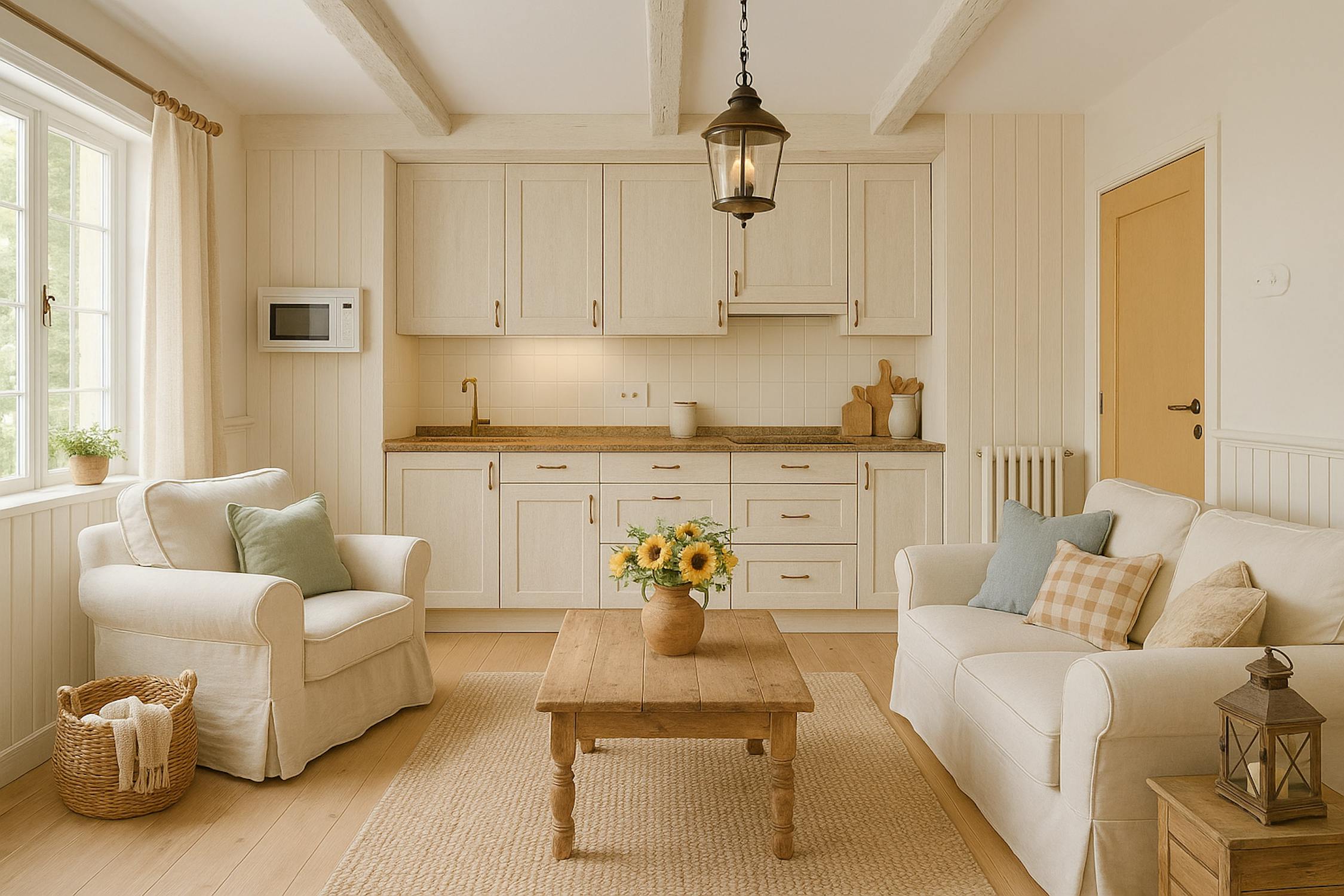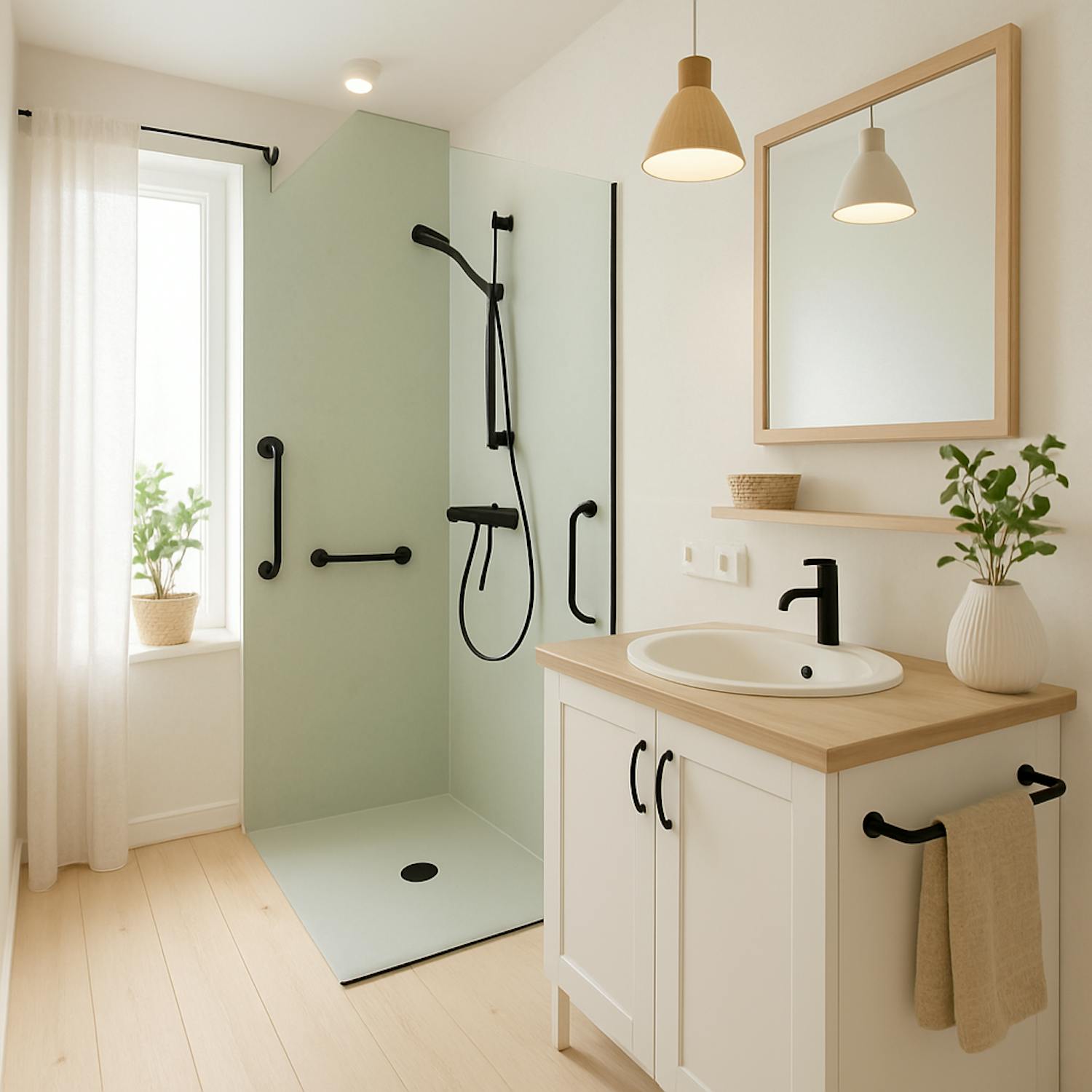 => gordijnen en verlichting aanwezig