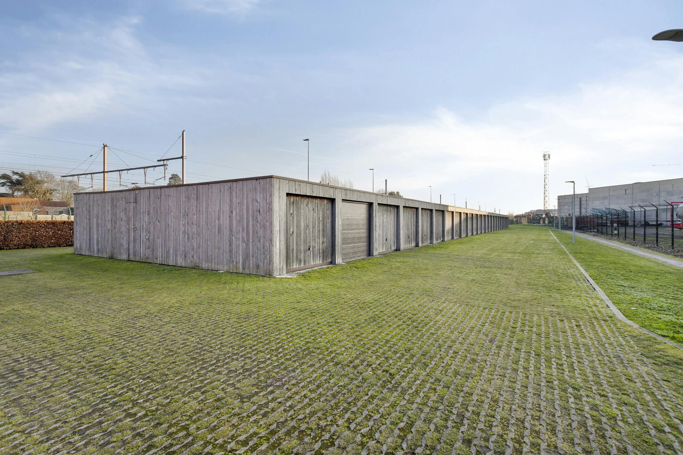 Buiten: Gemeenschappelijke fietsen en vuilnisberging - privé autostaanplaats - garage met sectionale poort