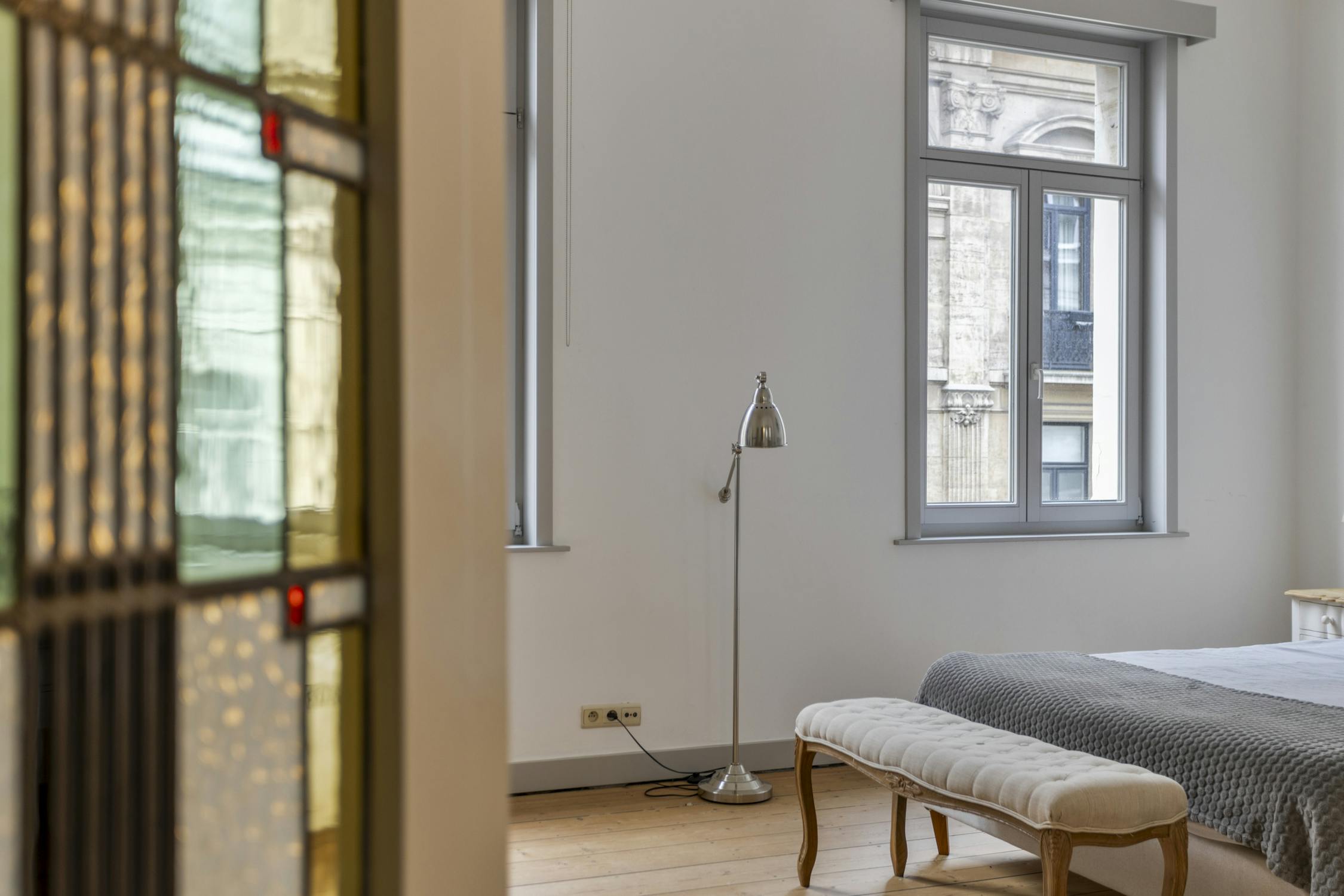 - Tweede verdieping: traphal, sas, slaapkamer, badkamer en wc