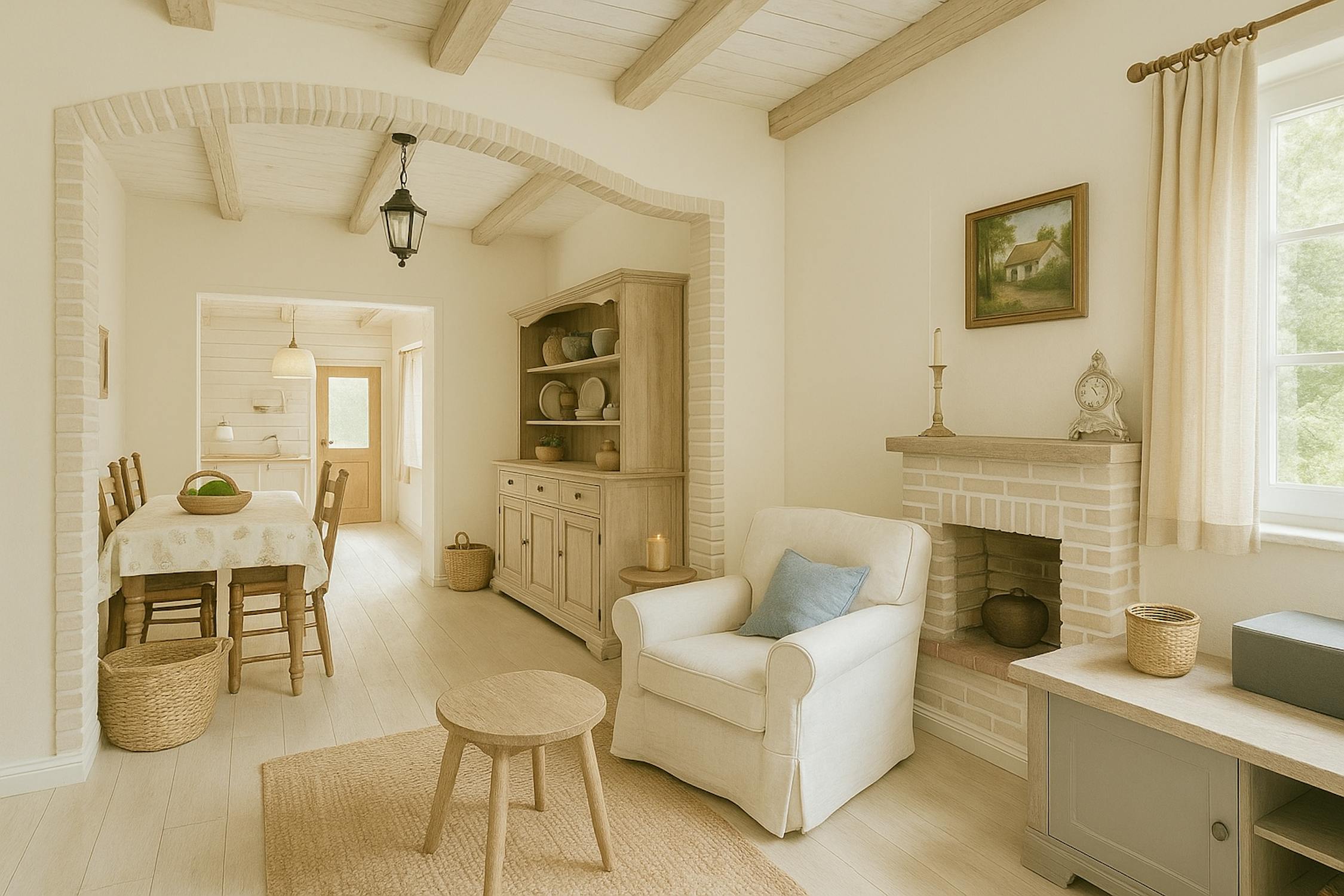 Gelijkvloers: inkomhal, woonkamer, keuken, badkamer, berging en tuin