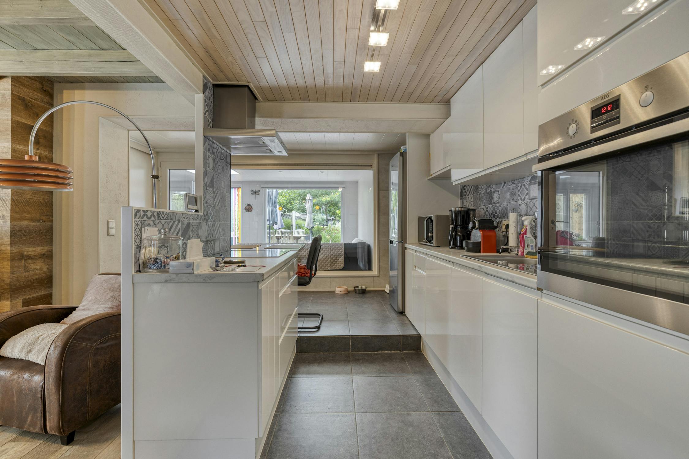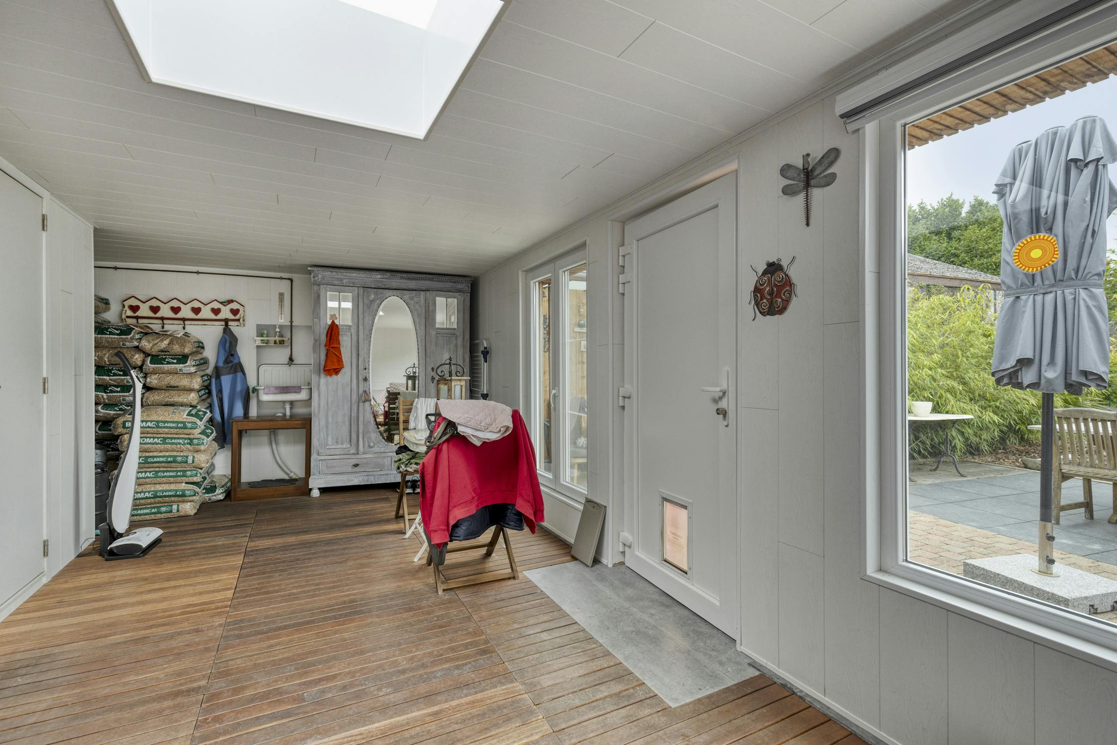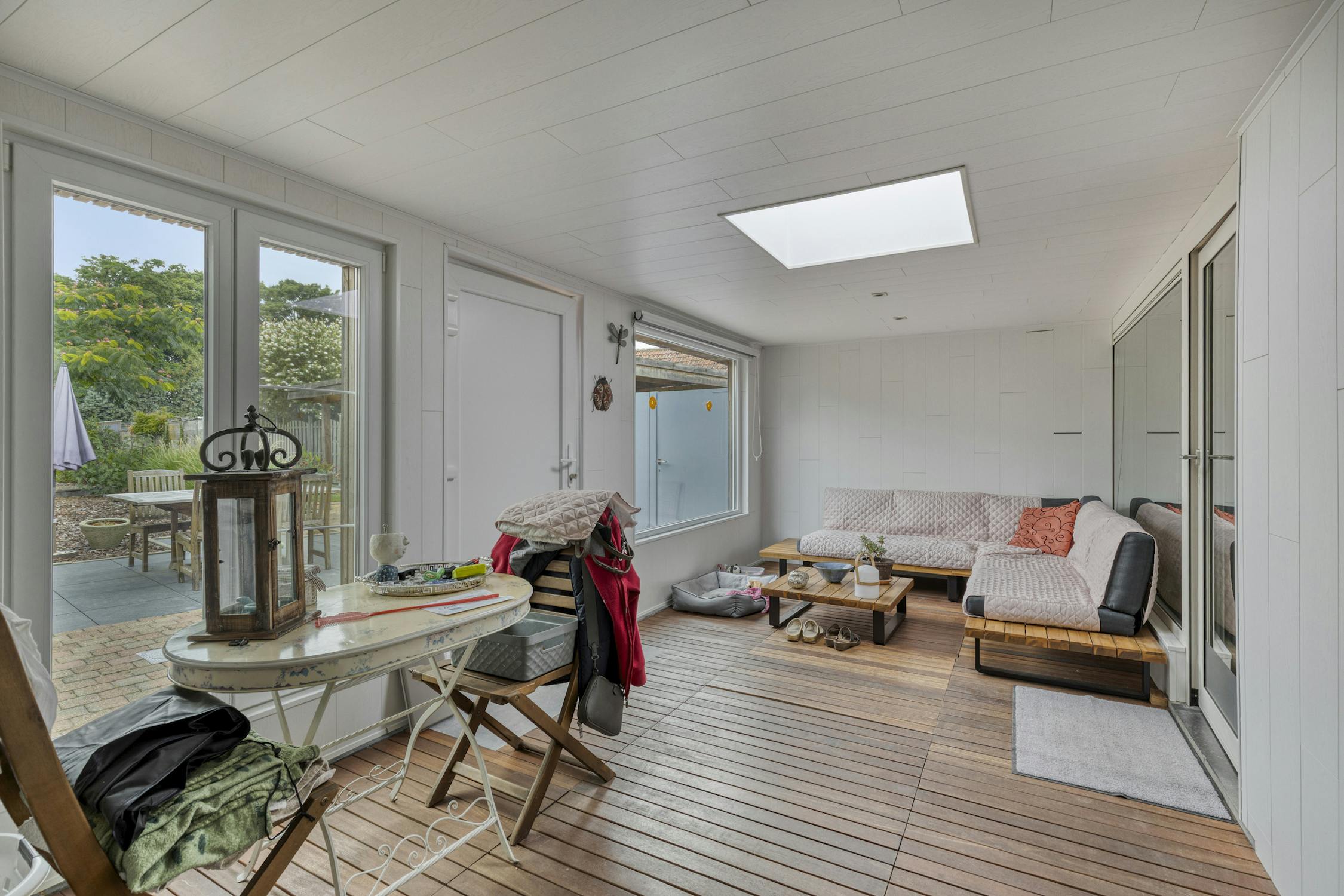 Inkomhal - leefruimte - eetkamer - keuken - badkamer (inloopdouche, dubbele lavabo, wc) - veranda - berging - tuin - tuinhuis - carport