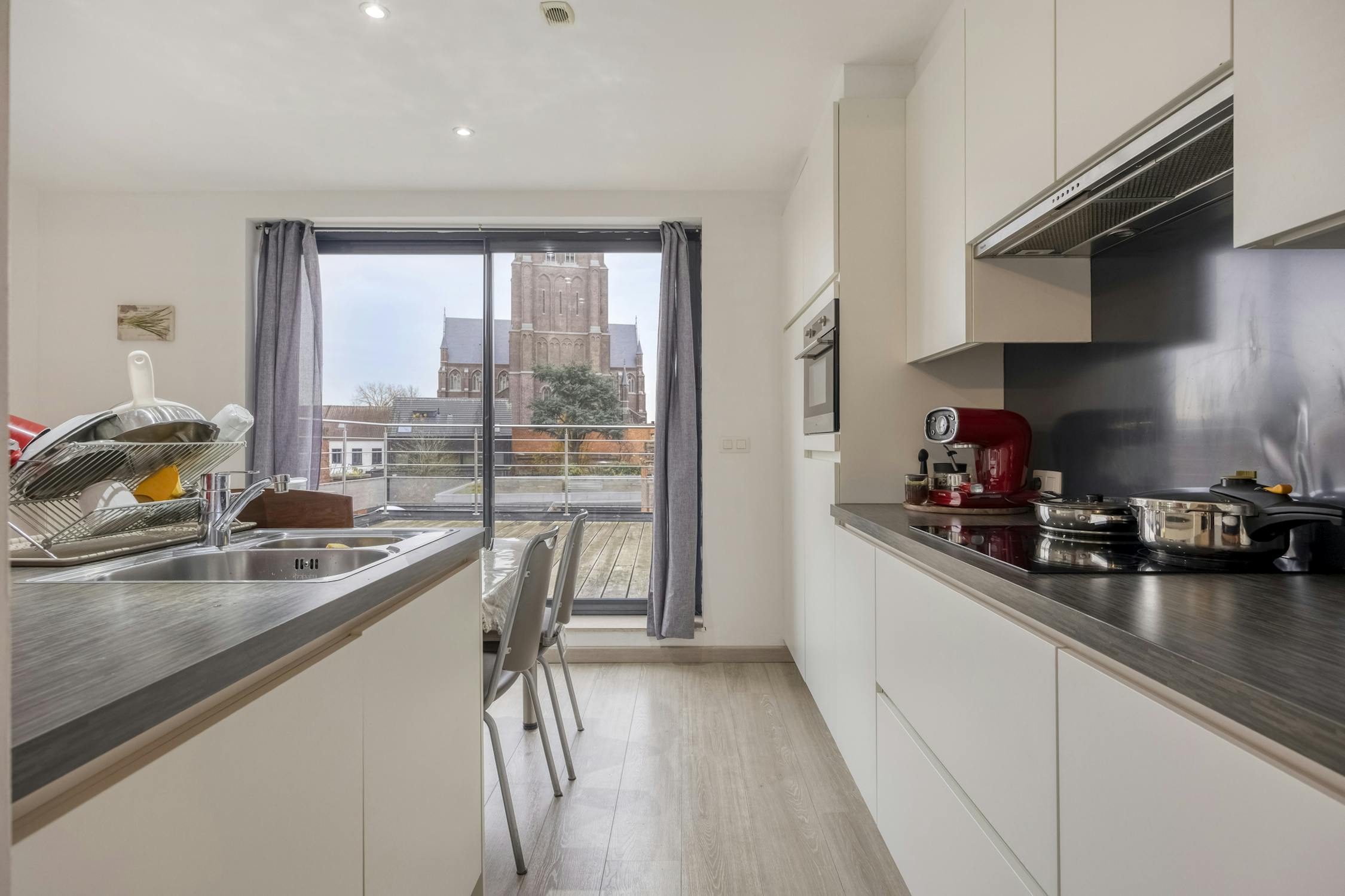 - 2e verdiep: Appartement (± 87 m²) met een ruim zonnig terras van ± 16 m².