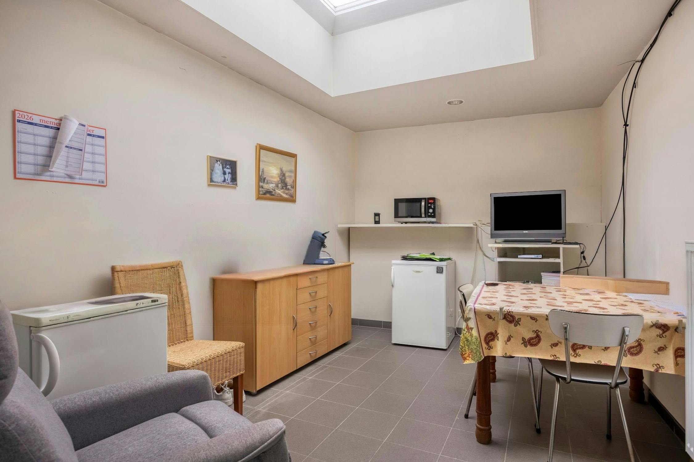 - winkelruimte, magazijn en stockageruimte via afzonderlijke ingang, keuken, bureel en toiletten